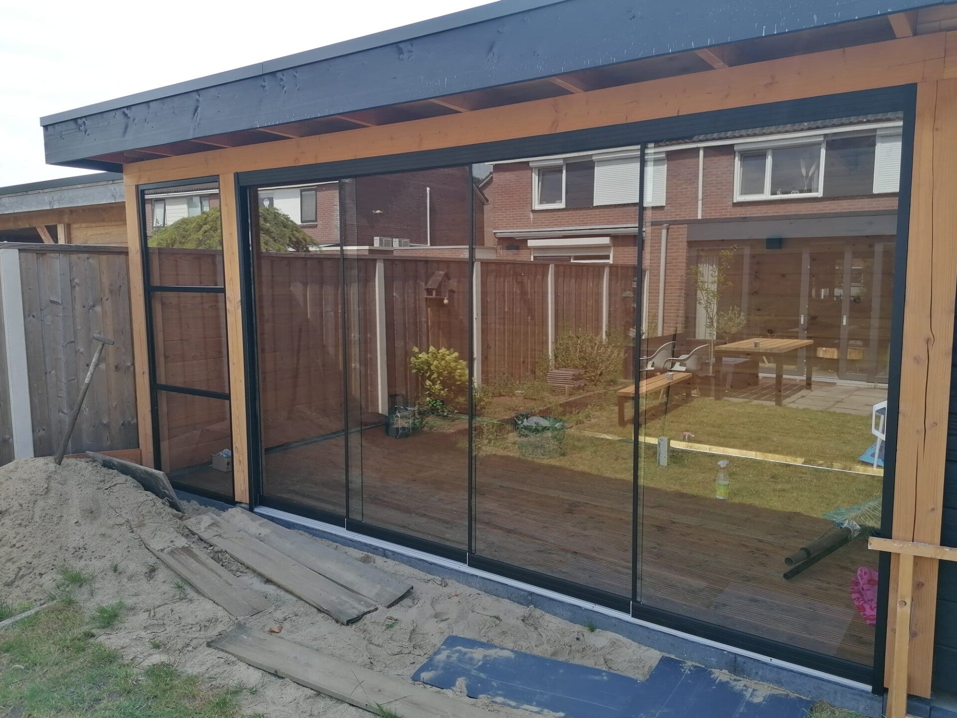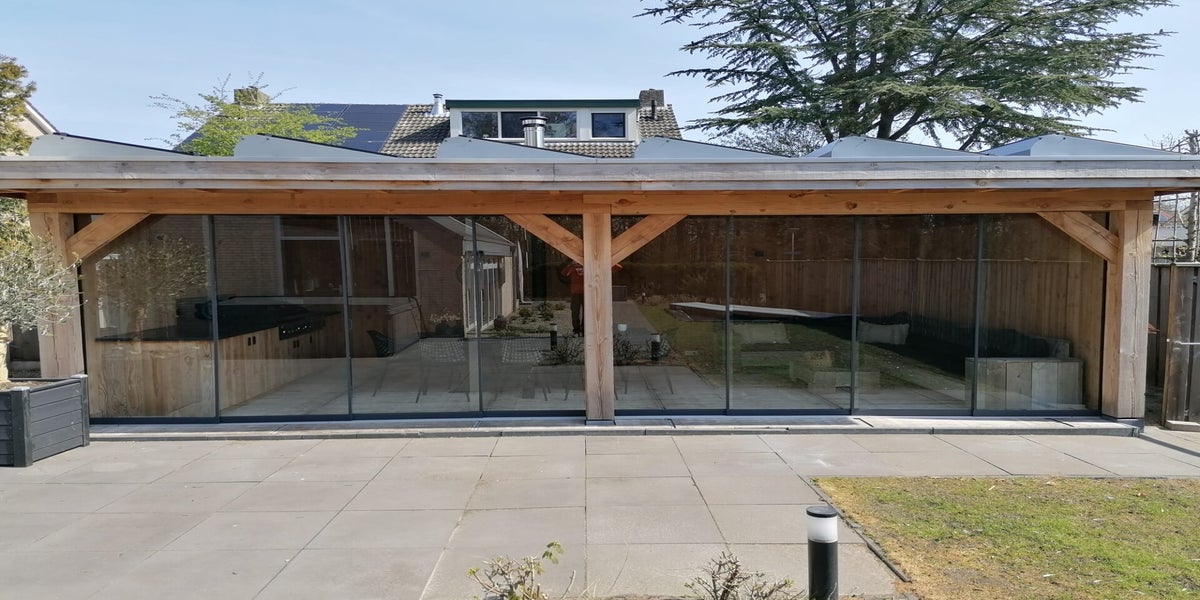 Wilt u ook met slecht weer van uw overkapping genieten? Dan biedt een glazen schuifwand uitkomst. Hiermee sluit u uw overkapping geheel af, terwijl u het vrije uitzicht op uw tuin behoudt. U schuift de panelen eenvoudig open voor frisse lucht of dicht voor warmte en beschutting. Een glazen schuifwand maakt van uw terrasoverkapping een echte serre of tuinkamer.Zo geniet u het hele jaar door comfortabel buiten, ongeacht het weer.
